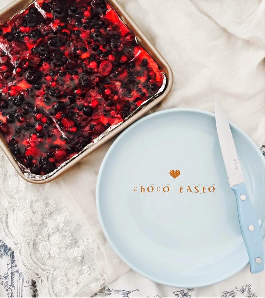Formę wykładamy folią aluminiową. Układamy herbatniki. Mieszamy składniki masy i wstawiamy na ok godzinę do lodówki. Wykładamy mieszankę owoców (u mnie porzeczki, jeżyny, maliny) na masę serową, zalewamy tężejącą galaretką. Chłodziłam 3 h przed podaniem.